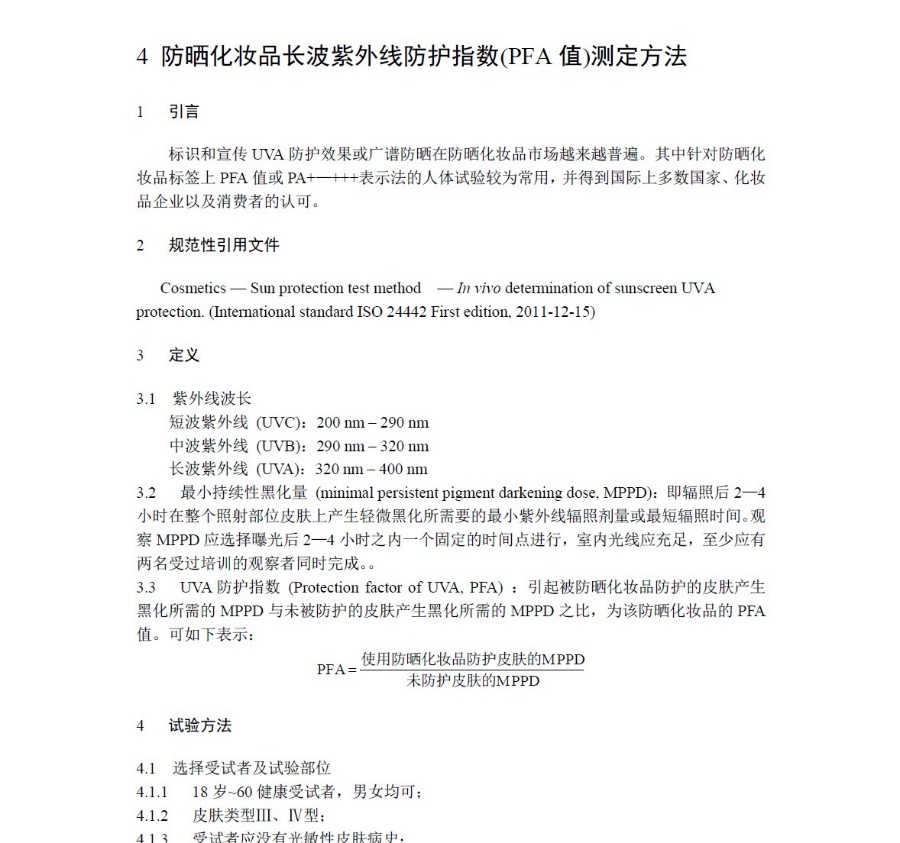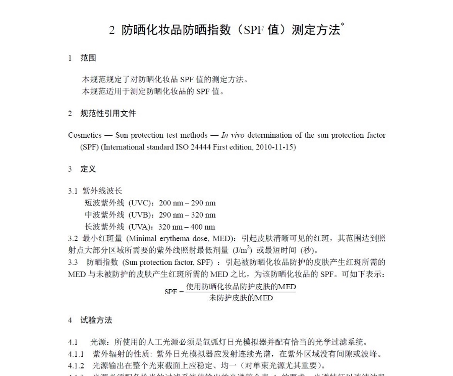 《化(huà)妝品安全技(jì)術(shù)規範》第八章(zhāng↔¥∑)第二節詳細闡述了(le)SPF的(de)人(rén)體(tǐ)測定方法:
