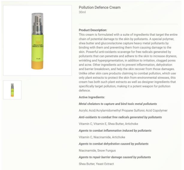市(shì)面上(shàng)有(yǒu)€↔具循證基礎的(de)護膚品原料,能(néng)打擊空(kōng)氣污染物(wù)導緻外(wài)β∞≥∞在皮膚衰老(lǎo)的(de)各個(gè)環節。例如(rú),好(hǎo)幾款特别配制(zhì)的(de)植物(wù)提取有(yǒu)抗氧化(huà)及抗炎功能(néng),能(néng)減少Ω±(shǎo)空(kōng)氣污染物(wù)對(duì)皮膚的(de)← 傷害。一(yī)款聚合物(wù)原料具金(jīn)屬螯合特性,能(néng)在污染空(kōng)氣中的(de)金(jīn)屬顆粒物(wù)進入皮 ₹膚前将之捕捉。