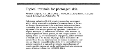 第二篇發表在10月(yuè)期的(de)《美(měi)國(guó)皮膚科$✘(kē)學會(huì)雜(zá)志(zhì)》, ≤題為(wèi)“外(wài)用(yòng)維A酸對(duì)光(guān↔<&¥g)衰老(lǎo)皮膚的(de)作(zuò)用(yòng)”,提出“外(wài)用(yòng)維A酸可(kě)§≤以至少(shǎo)部分(fēn)逆轉過度♥β暴露于陽光(guāng)下(xià)的(de)皮膚結λ>構損壞,并且可(kě)能(néng)有(≥♣§×yǒu)助于減緩光(guāng)衰老(lǎo)過程”的(de)結論。