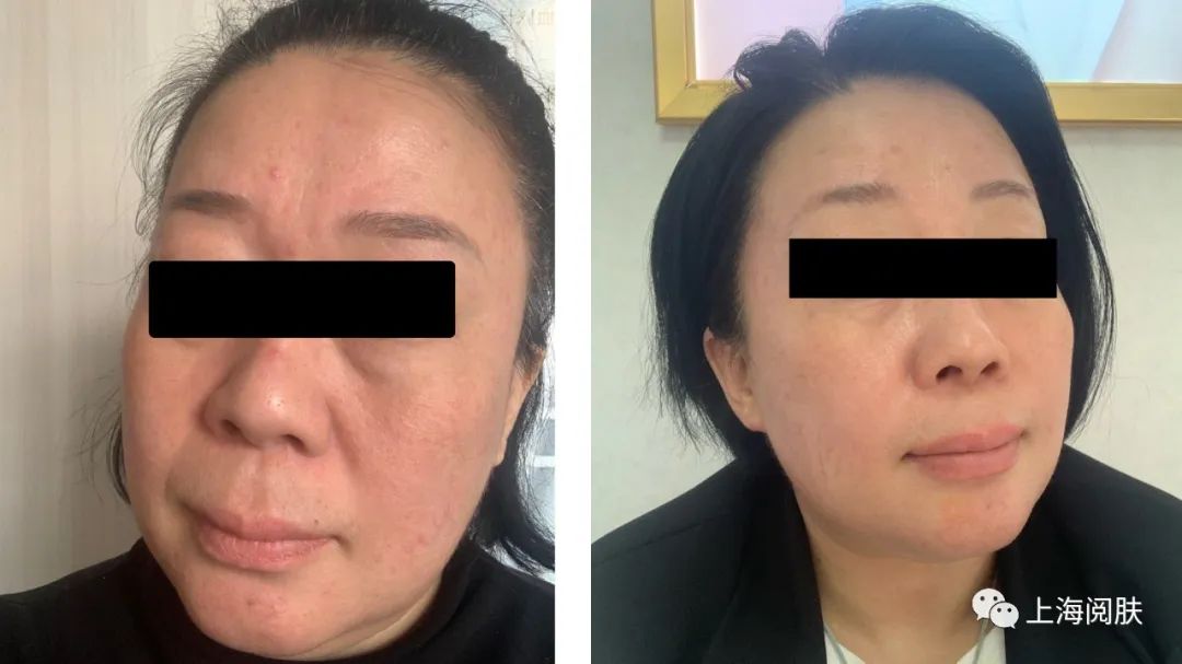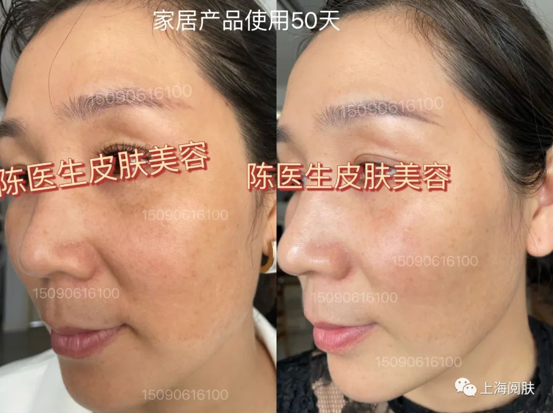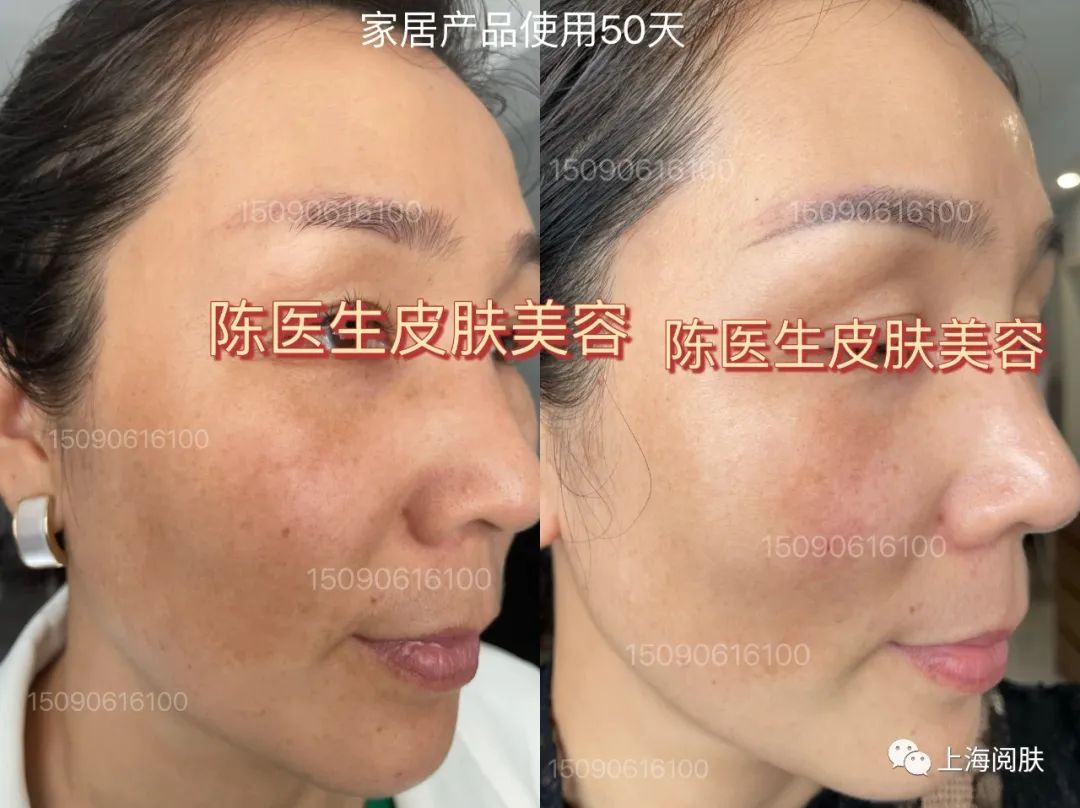 通(tōng)過光(guāng)電(diàn) ₽σ配搭使用(yòng)功能(néng)性産品50天,患者面部膚色明(míng)顯提亮(liàng)♦&♠,皮膚細膩了(le),有(yǒu)光(g®uāng)澤了(le)許多(duō)。