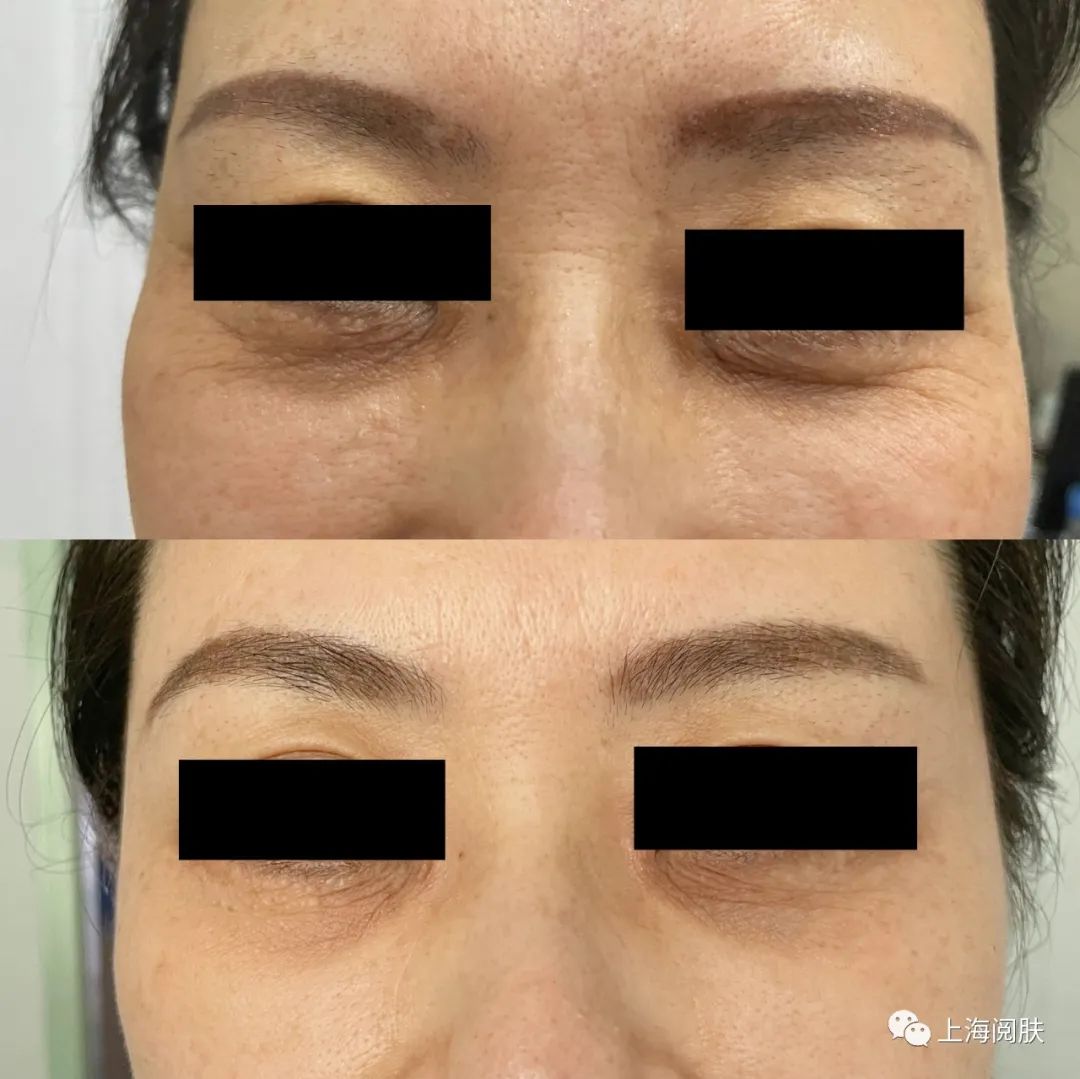 楊女(nǚ)士,46歲,眼部皮膚衰老(lǎo)和(hé)黑(hēi)眼圈比較嚴重,本想手術λ≤☆(shù)提眉修複雙眼皮。我跟她(tā)做(zuò)了(π♥☆©le)點陣激光(guāng)抗衰後用(yòng)諾葳奇産品₩輔助舒緩黑(hēi)眼圈,這(zhè)是(s✔πhì)一(yī)個(gè)月(yuè)的(de)效果對(duì)比。